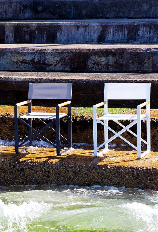 Lights, camera, action! Inspired by the classic ‘70s director chair, our contemporary take mixes materials — finishing the arms in solid teak for a striking contrast.