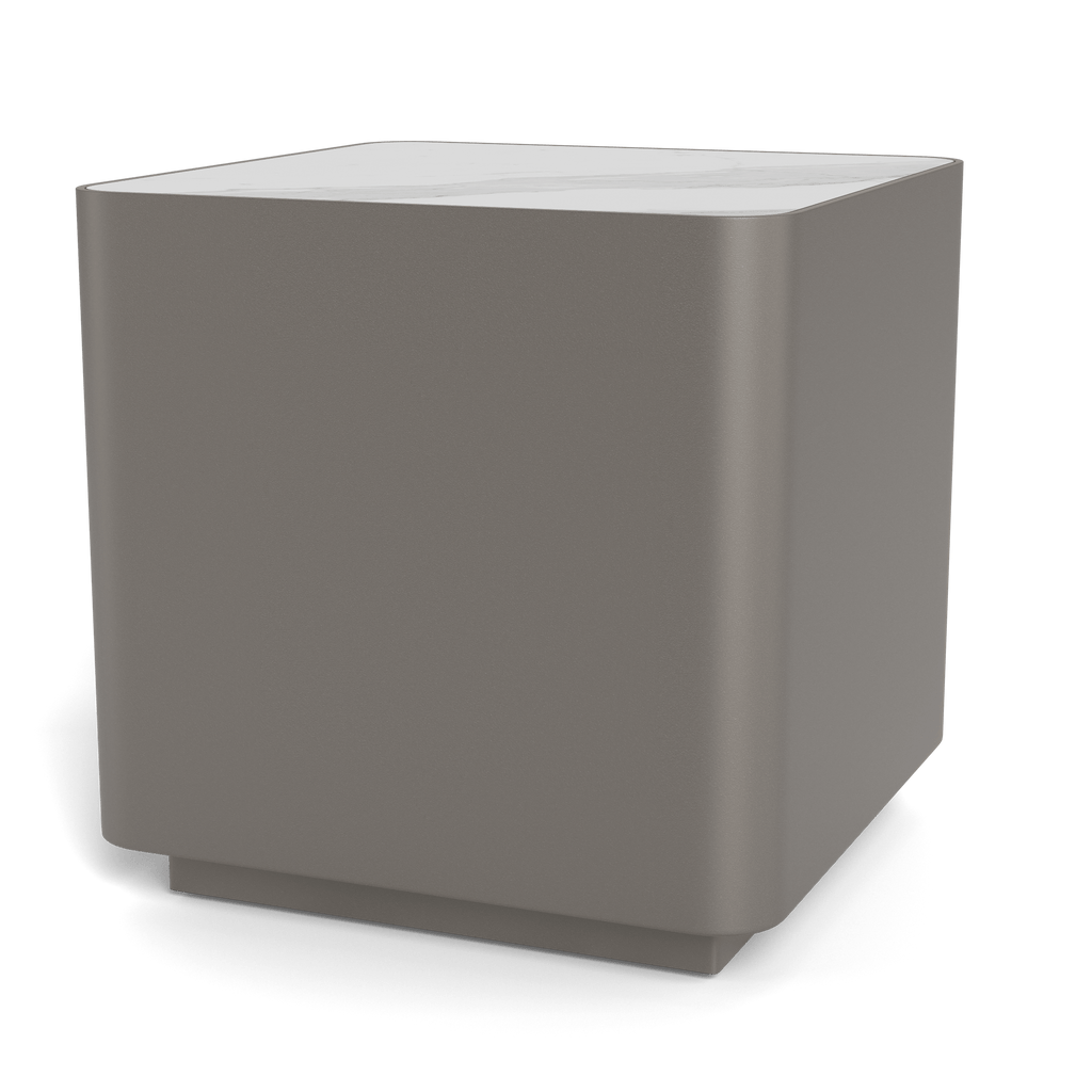 Our Antigua collection brings European styling and a new vision to the coastal lifestyle. Clean lines and sleek, curved corners define our Antigua Square Side Table — featuring extruded solid aluminum in Asteroid or Taupe topped with Italian ceramic available in Noir or Grigio that floats on a plinth base. Designed to look just like stone, this modern square outdoor side table naturally has a stronger resilience to endure the elements over years of beautiful use.