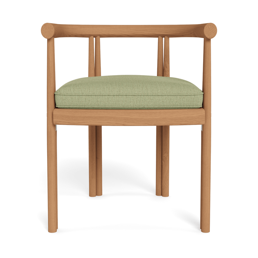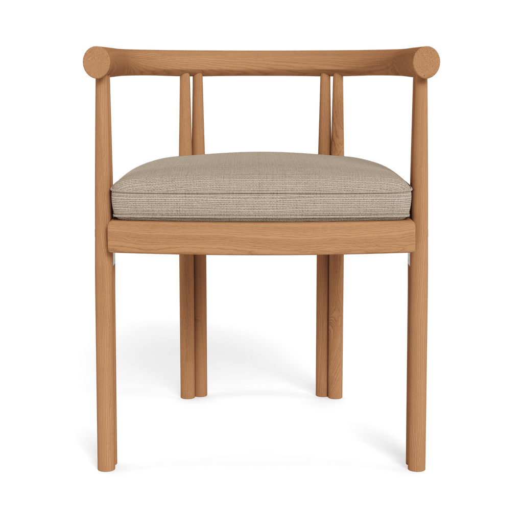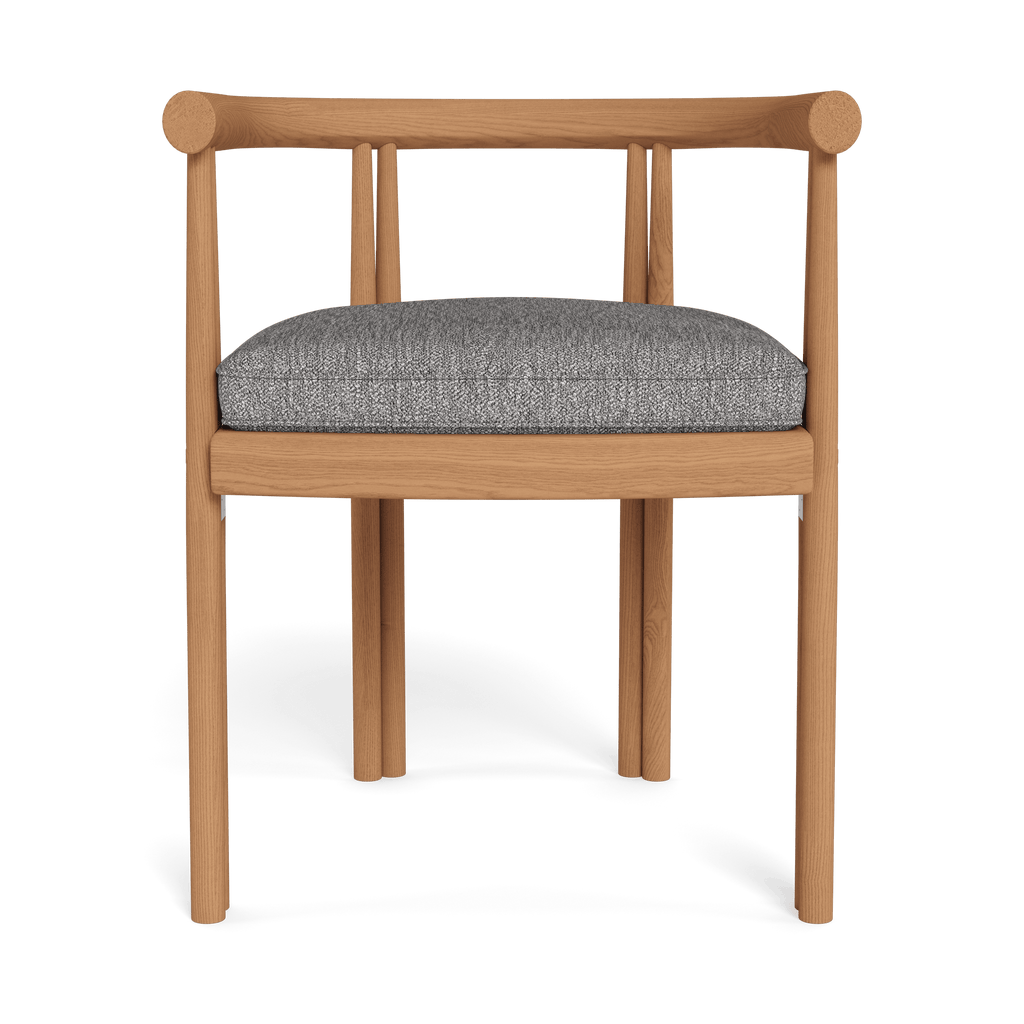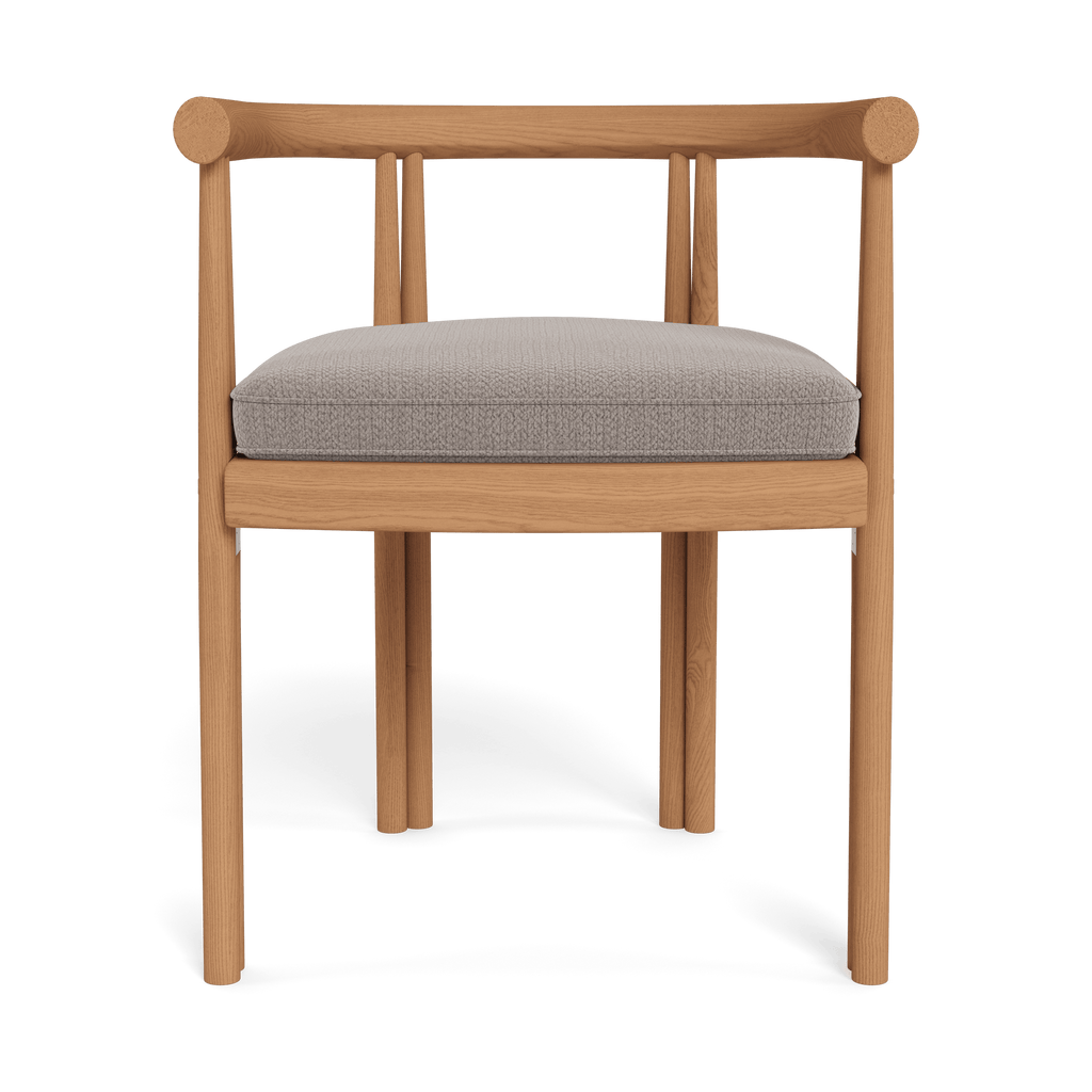 Influenced by modern Australian architecture and landscapes, our Cove Teak collection features considered details like double cylindrical legs and curved edges that create soft sculptural silhouettes. The Cove Teak Dining Chair is contemporary comfort, featuring a refined solid teak frame with an architectural double leg detail and striking curved back. Enjoy a plush all-weather cushion that invites sink-in comfort. This sculptural outdoor dining chair is a versatile design element for any space and effortlessly coordinates with the matching side chair. Pair it with any table to complete the outdoor dining set.
