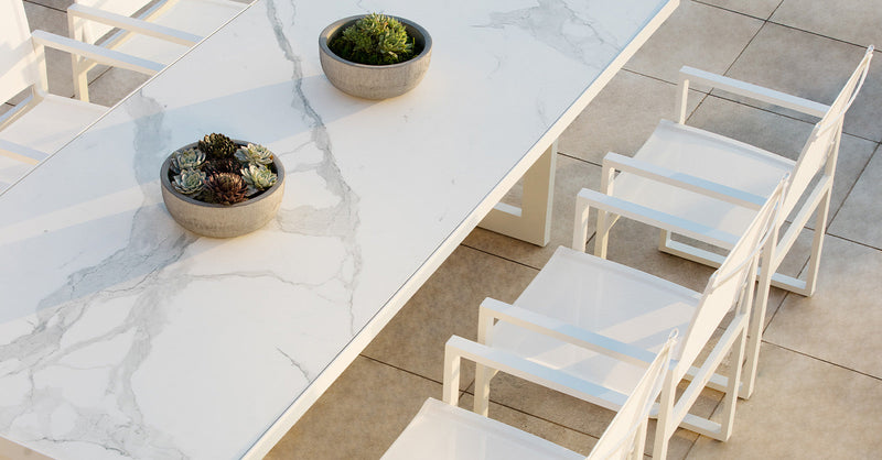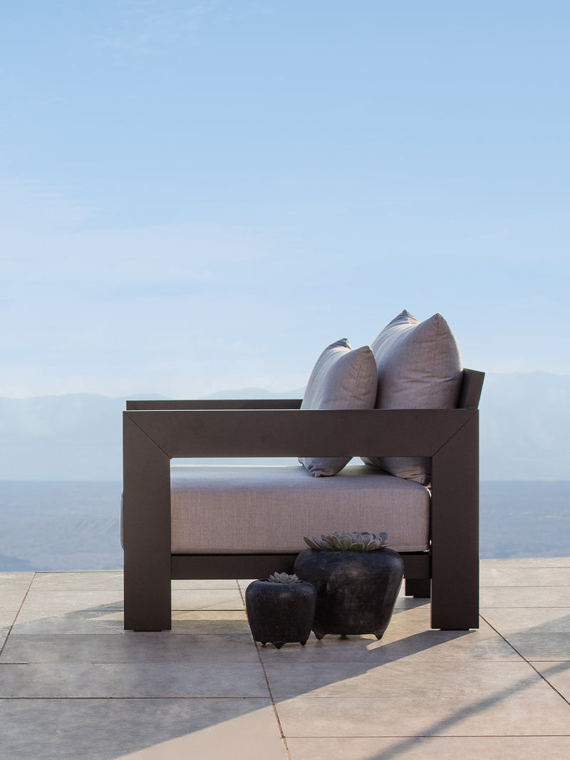 Crafted from high-quality extruded aluminum – available in Asteroid finish – with a superior quality European powder coating sourced from AkzoNobel® for weather resistance. Our Aluminum furniture is resistant to corrosion and rusting while still being light, strong and easy to clean. Asteroid is our dark grey finish – a contemporary staple to our product line and versatile to many styles.