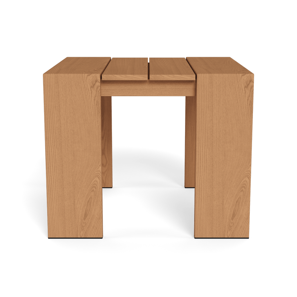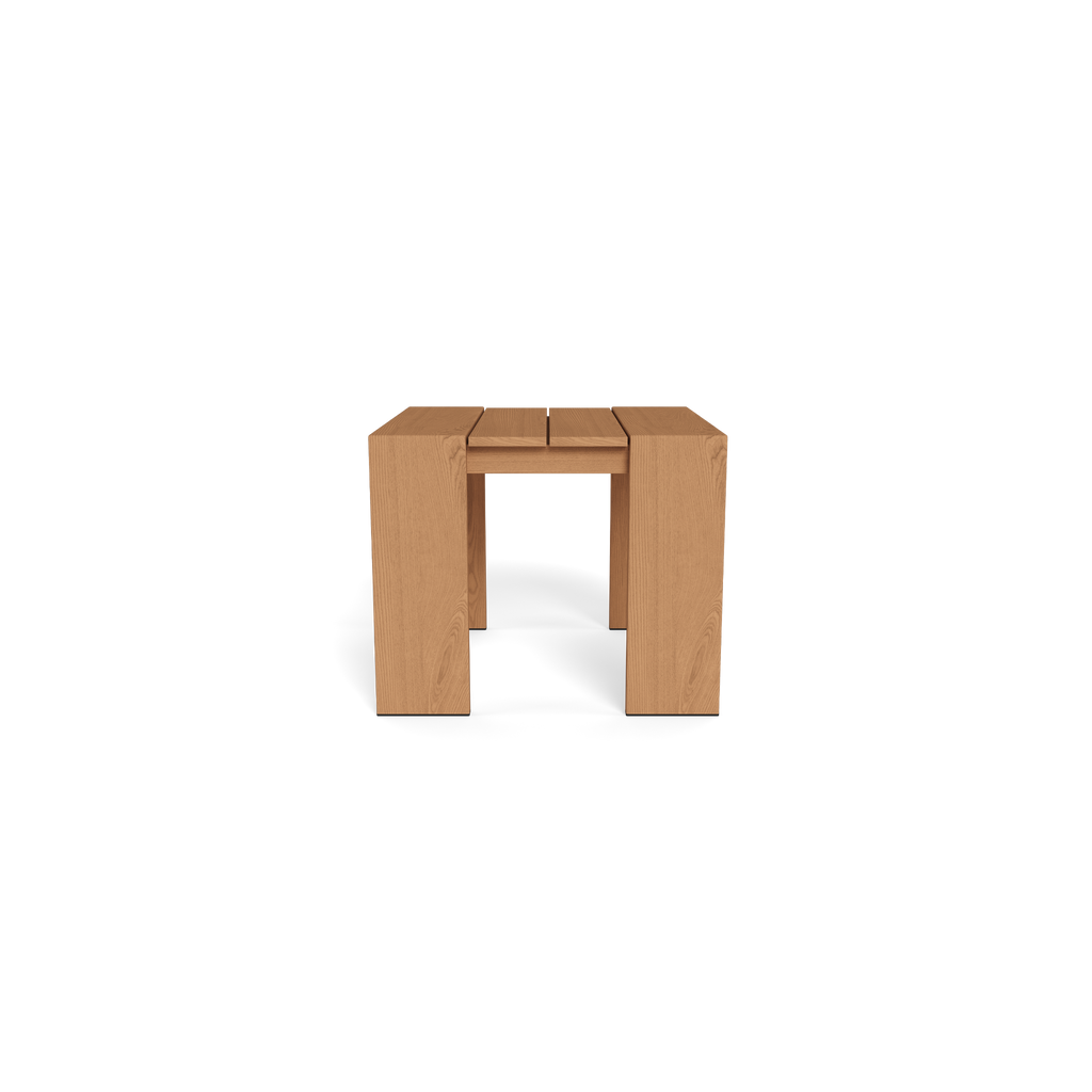 Our Hayman collection is a statement in simplicity with clean angles and modern styling. Defined by wide legs, our Hayman Teak Side Table was designed as the perfect addition for your seating set — enjoy a generous surface in slatted solid teak that's streamlined yet functional. An indoor aesthetic meets outdoor performance with this modern side table made for a variety of spaces. Place it next to your outdoor sofa, sectional sofa or poolside Sun Lounge.