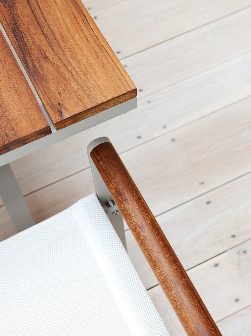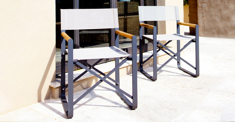 Lights, camera, action! Inspired by the classic ‘70s director chair, our contemporary take mixes materials — finishing the arms in solid teak for a striking contrast.